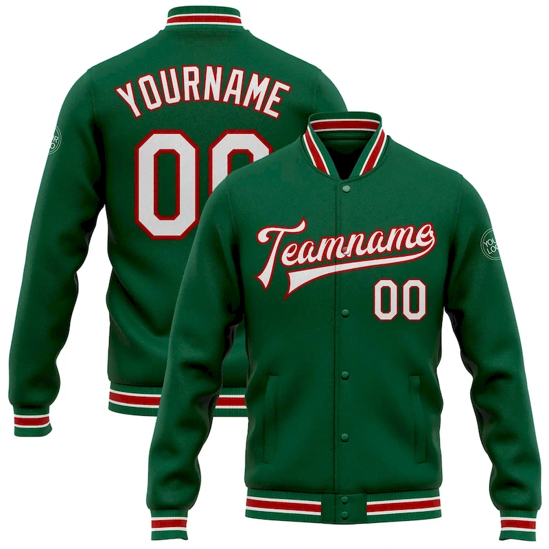 £38.99Custom Kelly Green White-Red Bomber Full-Snap Varsity Letterman Jacket